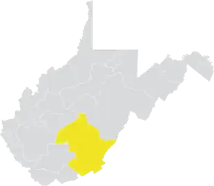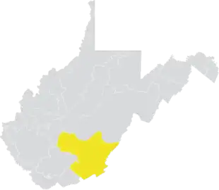 The district is located entirely within West Virginia's 3rd congressional district, and overlaps with the 28th, 32nd, 41st, and 42nd districts of the West Virginia House of Delegates.[5] It borders the state of Virginia.[1]