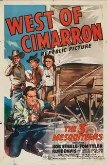 West of Cimarron is a 1941 American Western "Three Mesquiteers" B-movie[1] directed by Lester Orlebeck and starring Bob Steele, Tom Tyler, and Rufe Davis.