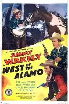 West of the Alamo is a 1946 American Western film directed by Oliver Drake and written by Louise Rousseau. The film stars Jimmy Wakely, Lee "Lasses" White, Ray Whitley, Jack Ingram, Iris Lancaster and Early Cantrell. The film was released on April 20, 1946, by Monogram Pictures.[1][2][3]