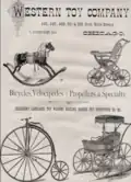 In 1865, Schoeninger and his partner F. Westermann started out manufacturing toys and other novelties under the name Western Toy Company. The factory burned down in 1866.[3] In 1866 Western toy Works took over another factory which produced toy and baby carriages.[4] The Western toy Company specialized in toy wagons.[5]