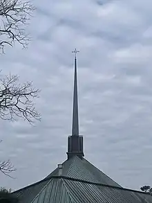 The copper clad roof with the Celtic cross topping the cupola serves as a landmark in the neighborhood and can be seen from many vantages in the northern part of Little Rock.