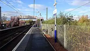 The line to Glasgow was also electrified in 2014. Originally due to be completed prior to the Commonwealth Games being held in the city, it was not commissioned until the December 2014 timetable change.[3] This is still four years earlier than originally planned and has seen the route incorporated into the Argyle Line and freed up the DMUs in use previously for redeployment elsewhere.