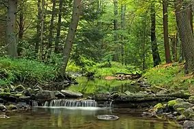 Forests and dense areas of mountain laurel occupy most of the valley of White Deer Creek in some reaches.[13] The stream's forested valley consists mainly of hemlock trees and mixed oak forest. The Union County Natural Areas Inventory recommended maintaining a forested riparian buffer around the creek.[20]