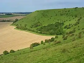 White Sheet Hill, also known as Whitesheet Hill, is a hill in the English county of Wiltshire. As one of the most westerly areas of downland in Britain the area is noted for its chalky farmland which contains a rich variety of rare and protected fauna and flora. The hill is also the site of a neolithic causeway camp and barrows; and an Iron Age hill fort. The Roman road which runs along the hill was at one time the main route through the Selwood Forest. The hill is part of the Stourhead estate and has been in the ownership of the National Trust since 1946.[1]