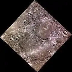 ![]() Exaggerated color MESSENGER image with Whitman in upper right | |