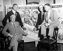 Director Armand Denis (seated right) with RKO exhibitors and poster for Wild Cargo (ca. 1934)