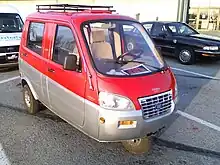 The Wildfire WF650-T is a three-wheeled truck. The Wildfire WF650-C is a three-wheeled hatchback sedan. Both are registered with the Department of Transportation as motorcycles. They are powered by a 650 cc water-cooled 4-stroke twin engine. The manufacturer states the vehicles get up to 60 miles per gallon,[2][3] although some dealers have suggested 40–60 miles per gallon is a more realistic figure. Both vehicles are manufactured by Jiangsu Sandi Motorcycle Co Ltd.[4]