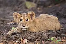 An Asiatic lion cub in Gir Forest National Park, India