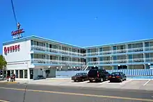 The motels are unique in appearance, with Vegas-like neon signs and fantastic architecture.[38] New construction in the area has seen the demolition of several motels to make room for larger condominiums. The Wildwood Doo Wop Preservation League has taken action to help save and restore these historic buildings. The Caribbean Motel in Wildwood Crest, and the Chateau Bleu Motel in North Wildwood are both listed on the National Register of Historic Places.[39]