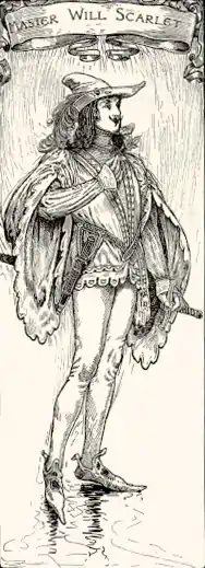 Will Scarlet (also Scarlett, Scarlock, Scadlock, Scatheloke, Scathelocke and Shacklock) is a prominent member of Robin Hood's Merry Men. He is present in the earliest ballads along with Little John and Much the Miller's Son.[1]
