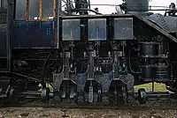 • The rear cylinder on the Willamette was facing the same direction as the rest of the cylinders, while the two front cylinders on a Shay faced forward, with the rear cylinder facing backwards.