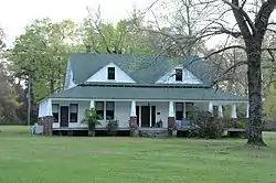 The Willett House is a historic house at 6563 Mount Holly Road, about 1.5 miles (2.4 km) east of Lisbon, Arkansas. The single story wood-frame house was built in 1926 by Scott and Mary Willett, and represents a well-preserved local example of Craftsman styling. The house is L-shaped, with two intersecting gable roof sections. It is sheathed in novelty siding, and has two interior chimneys. The northern facade features a wide hip roof extending over a porch supported by six battered wooden columns decorated with false battens. This porch wraps around the side elevations. The rest of the roof line has exposed rafter ends, and is further decorated with triangular knee brackets at the corners. The property also includes four outbuildings, including a c. 1900s barn.[2]