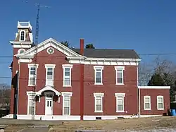 William A. Ragsdale House, also known as Pine Hall, is a historic home located at Bedford, Lawrence County, Indiana. It was built in 1865, and is a two-story, Italianate / Second Empire style brick dwelling on a limestone block foundation. It features a 3+1⁄2-story projecting entry tower with a mansard roof.[2]: 5
