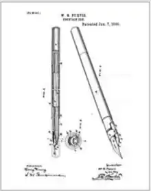 According to Purvis, his updated design of the fountain pen was intended to provide a simple, durable, and cheaper construction so the pen could be carried in someone's pocket.[6] Purvis set an elastic tube between the pen nib and the ink reservoir, enabling the tube to return the excess ink to the reservoir.[1] After this improvement, the new pen could evenly distribute the ink when being used. For this design, Purvis received U.S. Patent 419,065 on January 7, 1890.[7][4]
