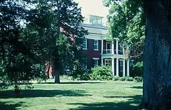 William B. Sappington House, also known as Prairie Park, is a historic home located near Arrow Rock, Saline County, Missouri. It was built in 1843, and is a 2+12-story, square, Greek Revival style brick dwelling on a limestone foundation. It measures 60 feet wide. The front facade features a two-story front portico with Doric order and Ionic order columns. Its roof is topped by a roof deck and cupola. The house was extensively restored from 1948 to 1955.[2]:2,4