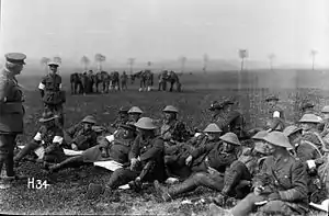 The New Zealand Division moved to the Western Front in April 1916. Braithwaite had a brief period in command of the division while its commander, Major General Andrew Russell, was on leave. During the division's first major engagement, the Somme Offensive, Braithwaite led his brigade in the Battle of Flers-Courcelette in which it incurred over 700 casualties during the capture of its key objective, the Switch Line.[1] A few days later he planned and directed a successful nighttime attempt by the strongest battalion of his brigade to seize the neighbouring high ground at what was known as Goose Alley.[10] After the battle, Russell assessed Braithwaite as the best performed of his brigade commanders.[11]