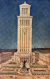 Buckland & Haywood specialised in school work, and St Hugh's College, Oxford (1914–16)[1] gained them a national reputation. The firm also designed the entrance buildings to Newnham College, Cambridge and the Technical College, Carlisle. Their largest work in this field is the Royal Hospital School, Holbrook, Suffolk (1925–33), which includes a chapel. The entrance to the University of Birmingham in Pritchatt's Road was also a design of Haywood's.