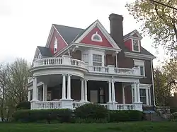 William Henry and Lilla Luce Harrison House, also known as the Dr. Samuel Harris House, is a historic home located at Cape Girardeau, Missouri. It was built in 1897, and is a 2+1⁄2-story, free classic Queen Anne style brick dwelling. It has a steeply pitched side-gable roof with projecting dormers. It features a wraparound porch with circular verandah added between 1900 and 1908.[2]: 5–6