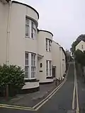 - Barn Street, Spring Gardens Haverfordwest (1839) Terrace of seven large two storeyed stuccoed houses with battlemented parapets, Built for William Rees, who lived in 8/8a Spring Gardens, with an elaborate cast iron two-storey veranda.[16]
