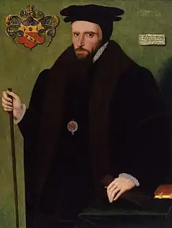 Born in about 1505 or 1506, Petre was the eldest son of John Petre of Tor Newton in the parish of Torbryan, Devon, by his wife Alice Colling, daughter of John Colling of Woodland, Devon.[2] The Petre family had been established at Tor Newton from at least the reign of King Richard II (1377–1399).[3] John Petre was by trade a tanner and both of his grandfathers were franklins (small landowners).[4] His brothers included:[4]
