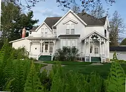 It is a two-story frame house. It is designed in a Victorian Gothic/Queen Anne style "with a hip and gable roof and scroll-like modillions ornamenting the cornice."[2]