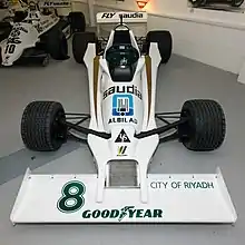 With major sponsorship secured from Saudi Arabian Airlines and TAG, the FW06 first took to the racetrack in the 1978 Argentine Grand Prix in the hands of Alan Jones, and a single car competed in all 16 rounds of the World Championship that season, finishing in the points 3 times including a second place at Watkins Glen, equalling Williams best result at the 1975 German Grand Prix.[4] An excellent drive by Jones at Long Beach was unrewarded. While running second the car developed mechanical trouble and fell back.[5] Jones liked the car, stating that it was pleasant to drive and was very drivable compared to previous machinery he had been given, and felt it was one of the best non ground effect cars that season.[6] The higher budget afforded by the sponsorship deal allowed Patrick Head to continually develop the FW06 throughout the year.[7] Williams finished ninth in the constructors' championship in 1978, matching the best performance by the team in its first incarnation achieved in 1975.[8]