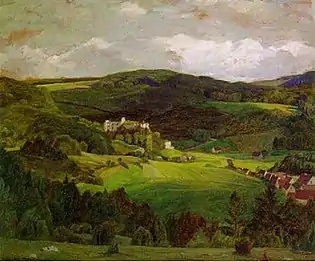 Three of his works were accepted at the Große Berliner Kunstausstellung in 1906. That same year, he moved to Dresden, to study with Eugen Bracht. After winning a medal at a student exhibition in 1909, he decided to return to Berlin, where he met Margarete Starck. They were married in 1912 and had one daughter. A series of successful exhibitions followed, at the Glaspalast (1913), the Carnegie Institute (1914) and the Panama–Pacific International Exposition (1915). In addition to his paintings, he was one of a group of artists who created frescoes at the Rathaus Schöneberg. During World War I, from 1915 to 1918, he served on the front lines in Flanders and Russia. After the war, he took some time off for study trips in the summer; turning his sketches into paintings at his studio in the winter. In 1921, he visited Tyrolia and the Alps for the first time, but declined to cater to the popular demand for Alpine art; choosing to paint his usual rolling hills instead.