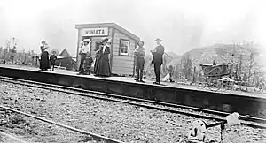 Winiata railway station was a station on the North Island Main Trunk in New Zealand.[1][2] It was decorated with an archway when the 13+1⁄2 mi (21.7 km) Mangaweka to Taihape section was opened by the Prime Minister, Richard Seddon, on 21 November 1904.[3]