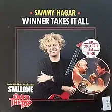"Winner Takes It All " is a 1987 rock song written by record producer Giorgio Moroder and Thomas Whitlock and recorded by Sammy Hagar. Originally was included in the soundtrack of the Sylvester Stallone movie Over the Top, being the first track and second single from the album, released through CBS Records. The song peaked at No. 3 on the Billboard Album Rock Tracks chart[1] and No. 54 on their Hot 100 chart.[2] It appears in Hagar's 2004 compilation album The Essential Red Collection.
