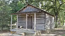 The Campbell Cabin, located next to the schoolhouse, is another structure with historic significance to the area. The cabin represents Ada's early history in homemaking and demonstrates what it would have been like to live as a pioneer in a log cabin.[4] A sign on the cabin reads "Cecil & Nell Campbell 1609 E 18th ST."