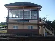 The Kent and East Sussex Railway extended their operations to Wittersham Road on 5 March 1977, following the replacement of a bridge over the Newmill Channel. It was however a further 15 months before a replacement station building could be provided, British Rail having levelled the station site following the closure of the line. A collection of items was sourced from Heathfield, Cranbrook and Deal the station building itself came from Borth on the Cambrian Line in Wales.[10] The rebuilt station was officially opened by Edward Heath MP on 16 June 1978.[11] A water tower from Shrewsbury Abbey on Colonel Stephens' Shropshire and Montgomeryshire Railway was later erected on site in April 1980.[12]