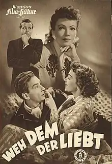 Woe to Him Who Loves (German: Weh dem, der liebt!) is a 1951 West German musical comedy film directed by Sándor Szlatinay and starring Gretl Schörg, Wolf Albach-Retty and Hubert von Meyerinck.[1] It was shot at the Wandsbek Studios in Hamburg. The film's sets were designed by the art director Herbert Kirchhoff.[2]