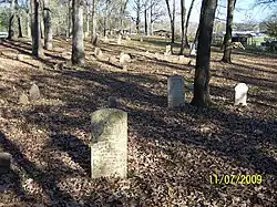 The Wolf Cemetery is a historic cemetery in rural Baxter County, Arkansas. It is located near the end of County Road 68, just south of its crossing of railroad tracks and north of the White River. It is a small parcel of less than 0.5 acres (0.20 ha), set on a rise above the river plain. The cemetery was established c. 1820, and contains the remains of a number of Baxter County's earliest settlers from the Adams and Wolf families. There are 25 marked and about 75 unmarked graves, with the oldest marked grave dating to 1823. Its most recent burial was in the early 20th century.[2]
