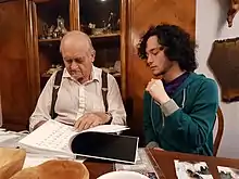 Wolfgang Haken discusses the four-color theorem with Marshall Pangilinan. They are looking at the book 99 Variations on a Proof by Philip Ording.