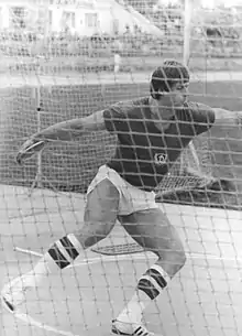 Wolfgang Schmidt (born 16 January 1954) is a German former track and field athlete who competed for East Germany at the 1976 Summer Olympics and won the silver medal in the discus throw.[1] A former world record holder, he also won several medals at the European Athletics Championships. Schmidt made headlines in 1982 due to his failed attempt to escape from East Germany. He later competed for the Federal Republic of Germany and won third place in the 1990 European Athletics Championships. Born in Berlin, he competed for the SC Dynamo Berlin / Sportvereinigung (SV) Dynamo.