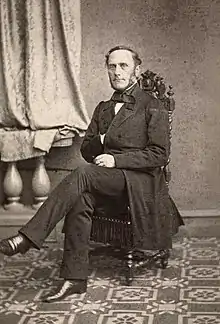In 1861 he entered politics. He was appointed chief of the Ministry of the Navy and Postal Affairs in December 1861,[2] being the fourth person to hold that position that year.[3] In October 1863 he left to serve as a member of the Council of State Division in Stockholm. The next year he returned as Minister of the Navy and Postal Affairs, only to return to Stockholm in 1867. He returned one final time to the Ministry of the Navy and Postal Affairs to head it from June 1868 to March 1869.[4] During this final period, the Parliament of Norway became severely disappointed with monetary amounts granted to enlargement of Karljohansvern.[2] Johan Sverdrup set forward a motion of no confidence, and this motion passed in what has been called a "foreplay of parliamentarism".[5]