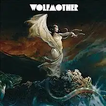 Wolfmother is the debut studio album by Australian rock band Wolfmother, originally released on 31 October 2005 in Australia. The album was later released internationally at various dates in 2006, with the addition of "Love Train" and a rearranged track listing. Wolfmother peaked at number three on the Australian ARIA Albums Chart[1] and was certified five times platinum by the Australian Recording Industry Association.[2] Six singles were released from Wolfmother's debut album: "Mind's Eye" (with "Woman"), "White Unicorn", "Dimension", "Woman", "Love Train" and "Joker & the Thief", the latter of which charted the highest at number eight on the ARIA Singles Chart.[1] The album cover, which is taken from The Sea Witch by Frank Frazetta, shows a nymph standing against a blue/orange sky, on a rock, though because it displays nudity the album is sold in Wal-Mart stores with an alternate cover featuring simply the band's white logo against a black background. It is the only album to feature co-founding members Chris Ross and Myles Heskett, who left the band in August 2008.