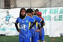 Football is the most popular women's sport in the country.[2] In schools, girls and boys do not play mixed football in Somalia.[2] On the adult level, there are 450 teams, 8 of which are available to women to play as mixed gendered teams and 6 which are women only.[2] In 2000, there were 280 registered female players on the junior and senior levels. This data was not kept from 2001 to 2004. In 2005, there were 1,435 registered female players but in 2006, the number dropped dramatically to 220.[2] This can be contrasted to futsal where there were 175 registered female footballers and 440 unregistered footballers in 2006.[2] In 2005, football was seen as a way to potentially help rebuild the country, with the concept having support from Somali women living abroad.[14] Women from Djibouti have been working to help Somali play football. Muslim extremists inside the country have made it difficult for women to play because of restrictions on what women can do. Inside Somalia, women have been completely prohibited from playing any sport.[15] Rights to broadcast the 2011 Women's World Cup in the country were bought by Al Jazeera,[16] despite the government having banned people from watching the men's competition in 2006 which resulted in several deaths.[17][18]