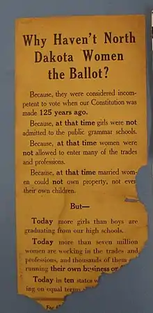 - 1 2 "North Dakota and the 19th Amendment". U.S. National Park Service. Retrieved 2021-04-10.