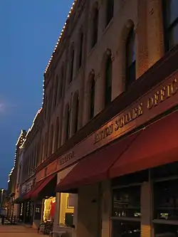 The Woodstock Opera House has been in continuous operation since its construction was completed in 1889. Along with the Old Courthouse, the Opera House is one of the key elements of the Woodstock Square Historic District. Originally constructed to be a library, council room, court, fire department, and provide a second floor auditorium, the Opera House quickly became the center for McHenry County's entertainment.[4] Today the Opera House hosts a variety of events. They include: concerts, theatre, dance, visual art, educational programs, lectures and meetings. The Woodstock Opera House is one of the oldest continually operating theatres in the United States.[4]