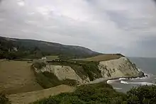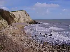 Woody Bay is a small bay on the south coast of the Isle of Wight, England. It lies along the coastline beneath the village of St. Lawrence. The bay faces south towards the English Channel, its shoreline is 260 yards (240 m) in length.[1]