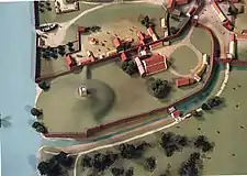 ![]() Reconstruction of Worcester Castle as it was in 1250 AD[nb 1] | |