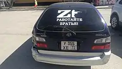 Decal on a car supporting the Russian invasion of Ukraine in Tyumen.