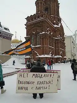 Single picketer for NLM in Kazan, during the 2021 Russian protests, holding a sign with the phrase.