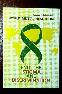 World Mental Health Day (10 October) is an international day for global mental health education, awareness and advocacy against social stigma.[1] It was first celebrated in 1992 at the initiative of the World Federation for Mental Health, a global mental health organization with members and contacts in more than 150 countries.[2] This day, each October, thousands of supporters come to celebrate this annual awareness program to bring attention to mental illness and its major effects on people's lives worldwide.[3][4] In addition, this day provides an opportunity for mental health professionals to discuss and shed light on their work, making mental health a priority worldwide.[5] In some countries this day is part of an awareness week, such as Mental Health Week in Australia.[6]