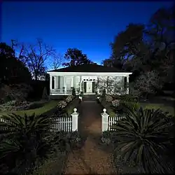 It is a one-story hipped roof cottage that was built in 1854. Elements of its Greek Revival style include its front doorway with sidelights and transom, and the symmetry of its front facade. It has a front entry porch with six square-panelled columns, with the panels carved decoratively. Additions have been made to the rear but these do not detract from the historic front facade.[2]