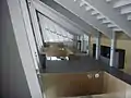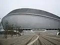 The site covers 406 acres.[12] The stadium itself is 60,000 square metres with an additional 20,500 square meters of area underground. It has a capacity of 41,506 people.[1] The interior contains two lighting towers and two large televisions on each end. The west side is uncovered. The west side is covered, contains the VIP boxes and has seating that extends higher than the rows on the east side. The seats are plastic and form-fitting. The access ways are wide and clearly marked.