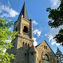 The church building was completed May 18, 1890,[2] replacing a wood frame church originally constructed in 1870. The most recent addition to the building occurred in 2003 and is visible from the Burns Ave side of the building.