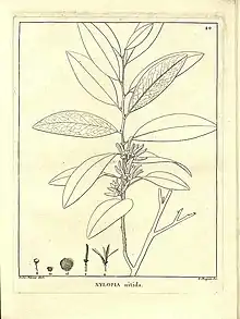 Xylopia nitida is a species of plant in the Annonaceae family. It is native to Brazil, Colombia, Ecuador French Guiana, Guyana, Suriname and Venezuela.[2] Michel Félix Dunal, the botanist who first formally described the species, named it after the shiny (nitidus in Latin) upper surface of its leaves.[3][4]