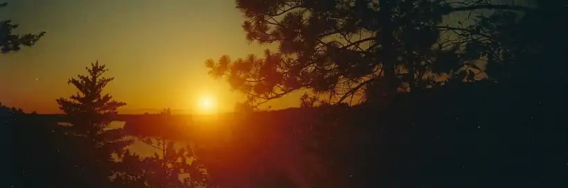 A sunset on Koshlong Lake, viewed from one of the campsites used by YMCA Wanakita campers during overnight canoe trips.